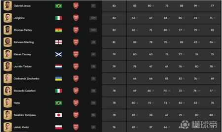 9月13日,fc25公布了完整的球员能力值数据,阿森纳方面,厄德高能力值为89,萨利巴、萨卡、赖斯的能力值都是87。