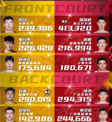 至于北区其他人分别是周琦、曾凡博、杨瀚森和赵继伟。周琦在加盟北京之后,他的人气是不差的。现在恢复越来越好,未来肯定可以出现在全明星。曾凡博本赛季攻守齐爆,打出了一个绝对核心球员的角色,他获得了众多球迷青睐。杨瀚森则是希望之星,他立足青岛内线,他是必不可少的一部分。赵继伟即便本赛季的伤病还是多,但目前恢复不错,他的人气必然不会低。