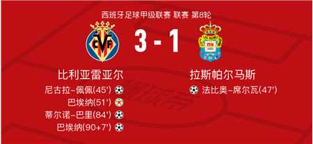 北京时间10月1日比利亚雷亚尔vs拉斯帕尔马斯,蒂尔诺-巴里得到全场最高的8.3分,达里奥-埃苏戈得到全场最低的6.2分