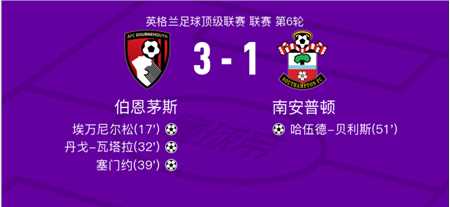 北京时间10月1日伯恩茅斯vs南安普顿,哈伍德-贝利斯得到全场最高的8.0分,西尼斯特拉得到全场最低的5.9分