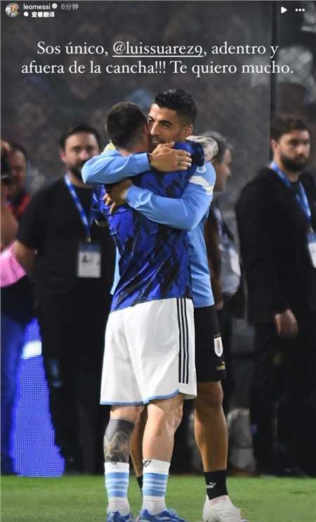 在苏亚雷斯宣布从乌拉圭国家队退役后,俱乐部队友、好友梅西在社交媒体发文致敬。
