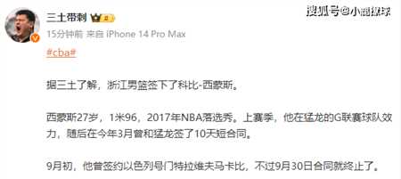 浙江男篮新赛季的开局并不理想,在八轮比赛打完,浙江男篮仅仅取得4胜4负的成绩,暂列联赛第十名。因为外援阵容实力太差,浙江男篮甚至爆冷输给过四川男篮,而且是15分惨败,这让浙江男篮管理层很难接受。据媒体人“三土带刺”最新报道:“浙江男篮签下了科比-西蒙斯。”之前浙江男篮签下了外援杰伦-哈里斯,但是后者因为体检没有通过导致未能完成签约,在这种情况下,浙江男篮只能尽快引进替补外援,希望西蒙斯的加入,能够帮助浙江男篮重回正轨。